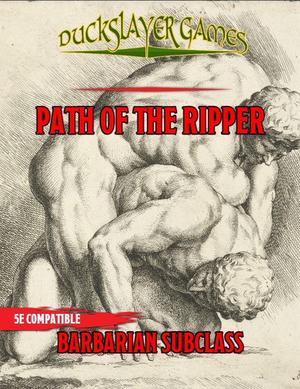 This week’s somewhat brutal Third-Party Thursday is the Path of the Ripper Barbarian subclass, a subclass I came up with for D&D 5e to make it possible to be a brutal wrestler as a barbarian!